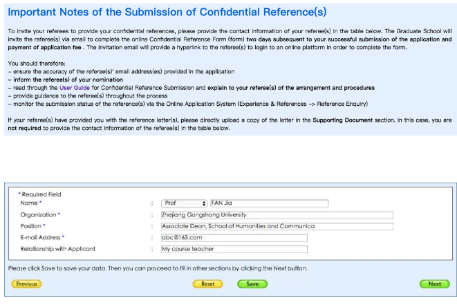 10. 填写推荐人信息References