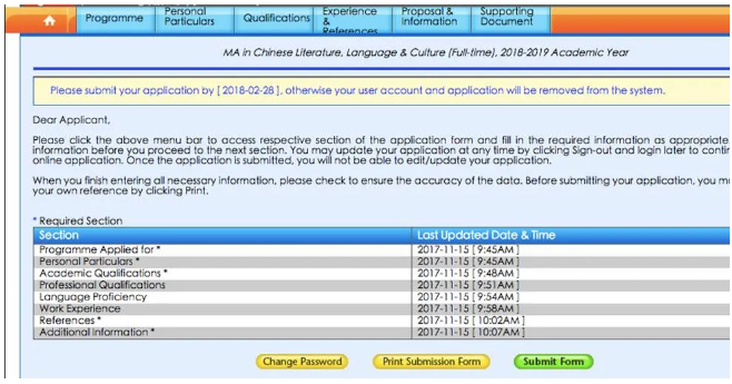 点击Print Submission Form再检查一下所有信息是否填写正确。提交之后所有信息将不能再修改。