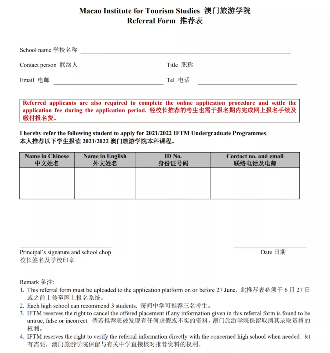 如考生的中学在澳门以外地区,且获校长推荐,可获得5%加分。