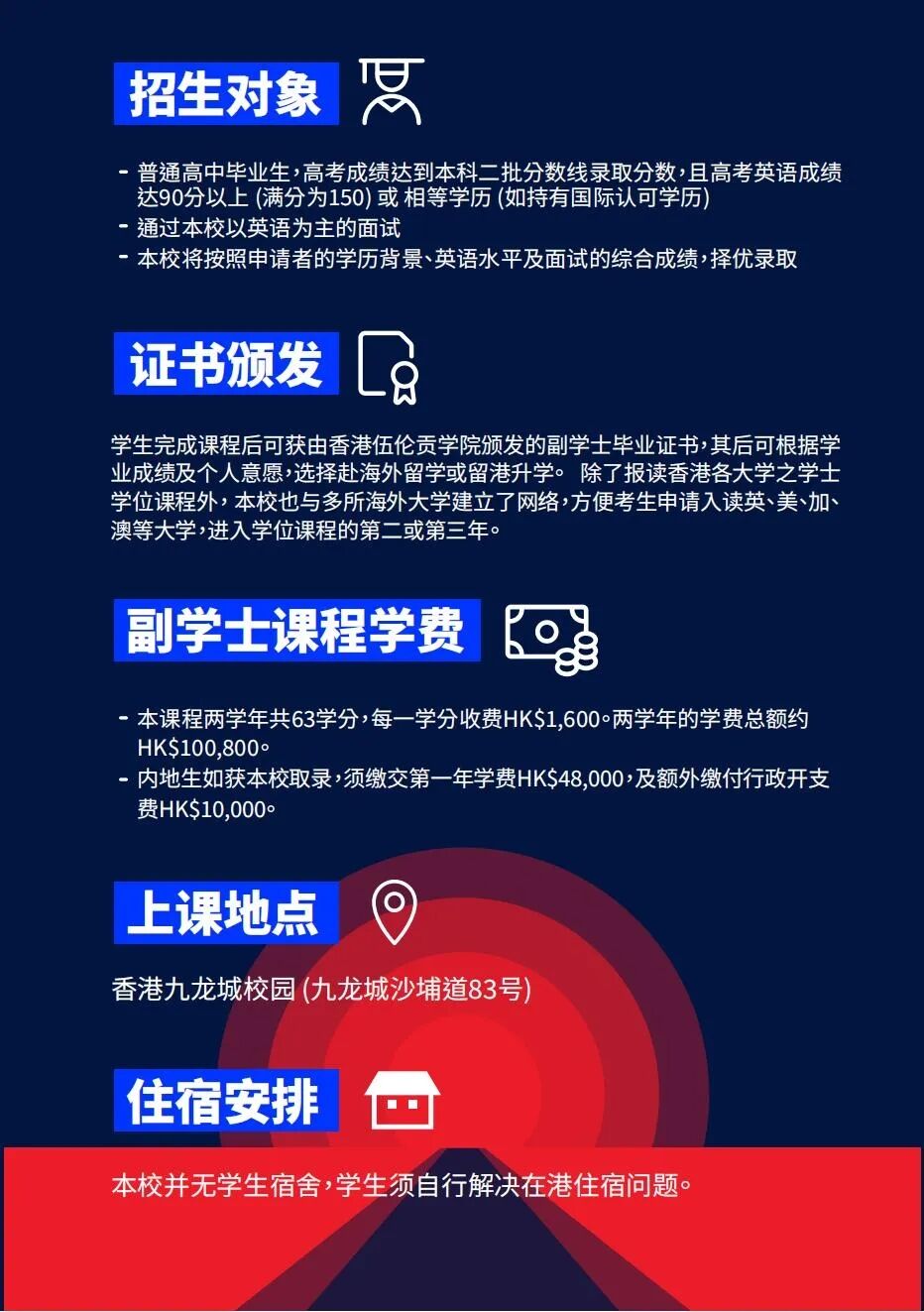 住宿:副学士不提供住宿(需自行租房)