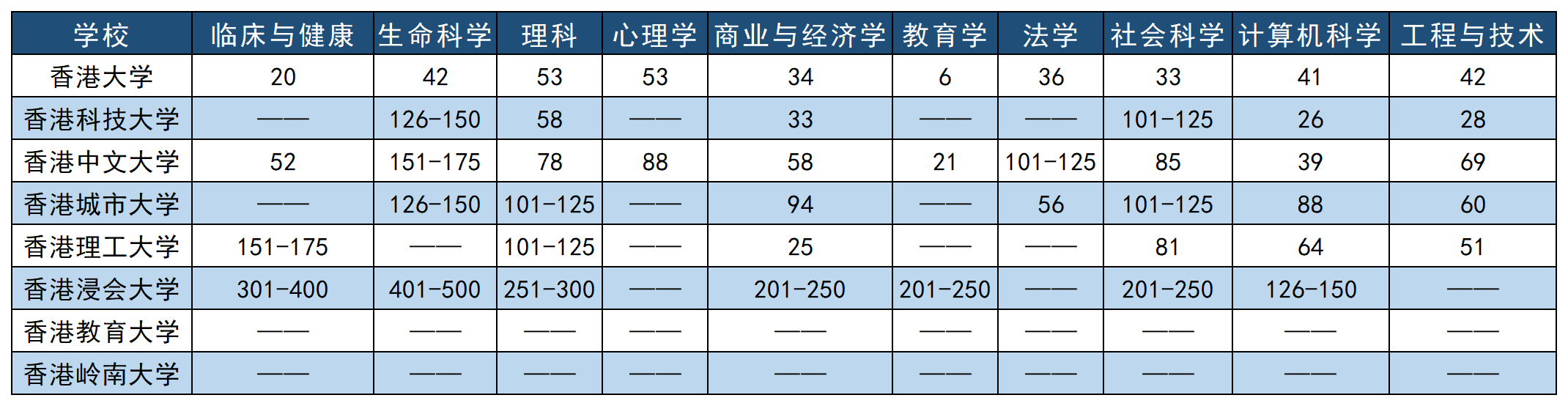 THE世界大学学科排名公布!一起来看看港校的表现如何吧!