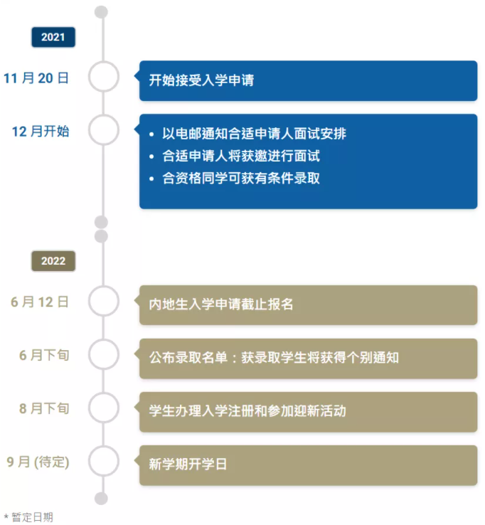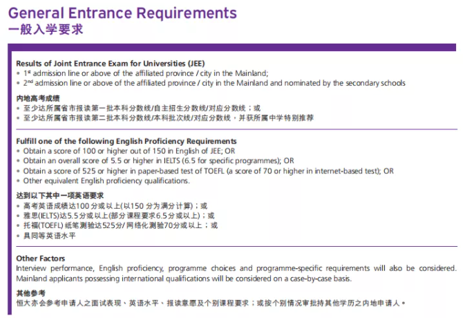 所有课程于录取时主要考虑考生之在校成績、高考总分、报读课程志愿、英语水平、面试表现及配合相关课程的具体要求等,择优录取。
