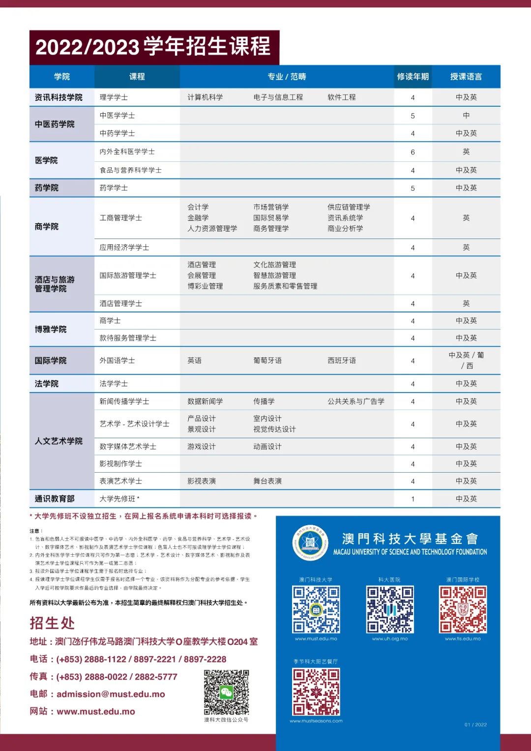 内地生必看|澳门科技大学2022/2023年全日制本科报名开始