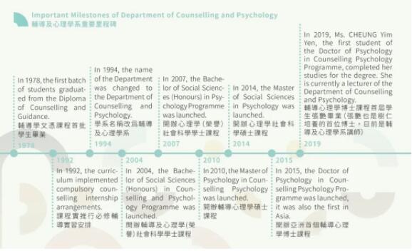 树仁的辅导及心理学教育,自1978年首批学生毕业至今,已发展成为拥有学士、硕士和博士学位课程的完备的学科教育体系。
