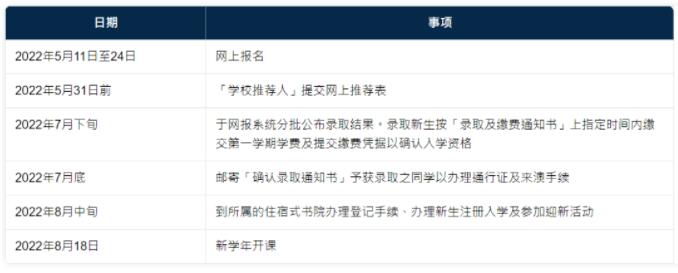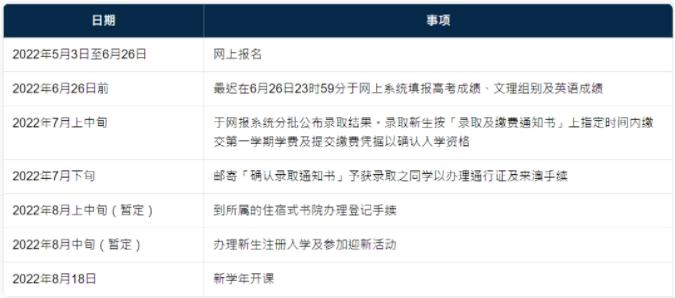 学校将根据申请人2022年高考之成绩(达到所属省市本科第一批录取分数线以上)、英语成绩、志愿次序及各课程之收生名额,择优录取。