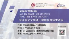 香港理工大学专业英文文学硕士课程 在线招生讲座9月24