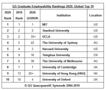 2020QS毕业生就业力排名发布 港大升至全球第9位