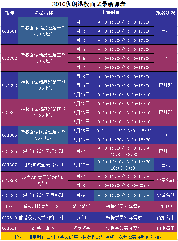 优朗国际英语自2006年开办港大面试培训以来,已连续举办了数54期针对港校大学高三本科生面试,香港大学研究生面试,香港大学卓越计划面试的专项培训课程,顺利帮助众多高考学子成功进入香港大学 香港科技大学 香港理工大学 香港城市大学 香港理工大学,香港教育学院 等港校就读。授课教师不仅对港校文化、高校面试均有丰富经验同时我们对香港各所大学面试要求及高校面试信息把握精准,确保学员在最短时间内高效做好最充分的语言能力提升及面试技巧准备。