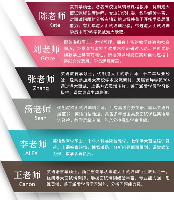 14年教育培训经验,《面试思维风暴》主编,港校面试杰出讲师,定期参加港校学术交流会。