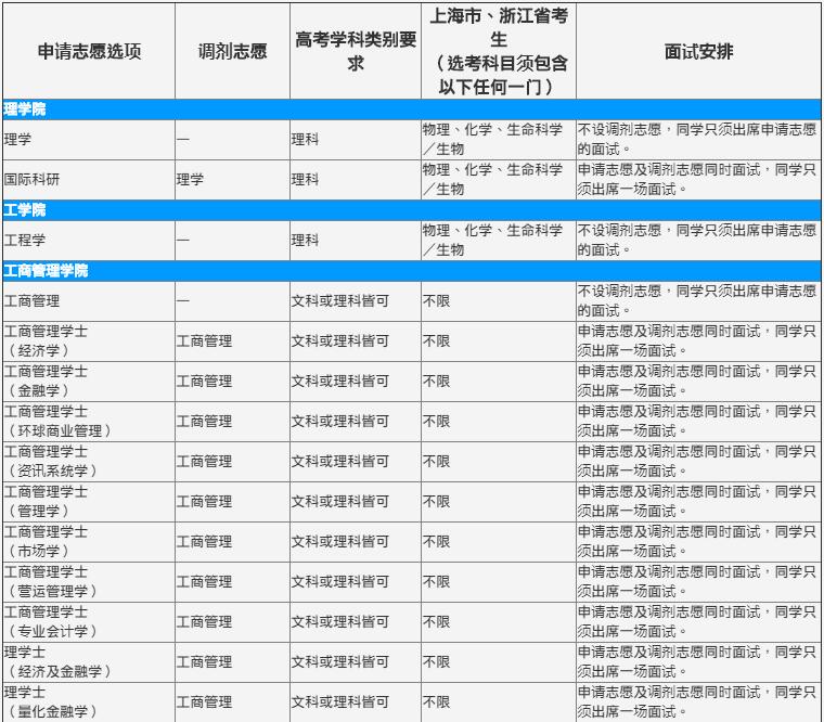 申请志愿选项、申请志愿及调剂志愿面试安排