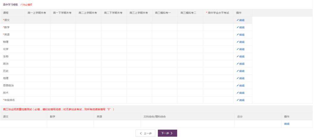 - 年级排名和年级总人数仅限输入数字。如已分科,所填年级总人数应为分科的总人数。如为理科,年级总人数应为理科年级总人数;如为文科,年级总人数应为文科年级总人数;