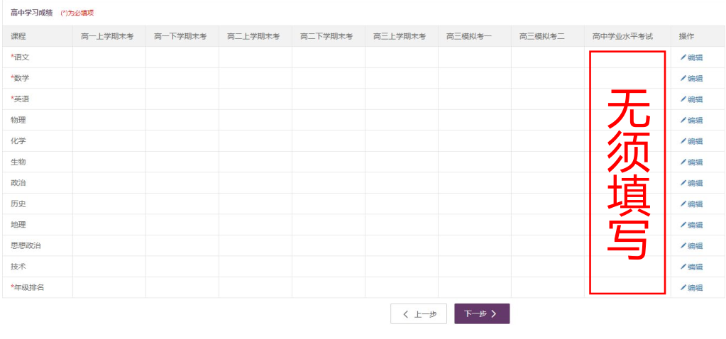 - 成绩填写项目因各省情况而略有不同,具体情况请参考下图: