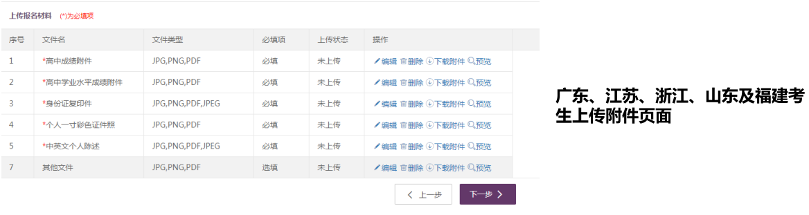 (广东、江苏、浙江、山东及福建考生上传附件页面)