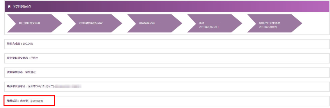 初审通过的考生请于2019年5月31日24:00前登录系统在当前报名进度中确认考试并缴纳相应考试费用。逾期未缴费者将被视为放弃考试资格,如已缴费但最终缺考,该考试费用将不予退回;缴费方式仅支持微信支付,请提前准备,点击“微信缴费”后会弹出付款二维码,扫描付费成功后等待10秒左右将会自动返回,届时缴费状态将更改为“已缴费”。