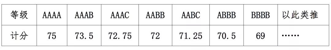 综合评价录取总成绩满分为750分。其中,高考成绩按考生高考分数的60%比例计算;入学测试成绩满分为225分,按入学测试的实际成绩计算;考生高中阶段的四门会考成绩以考生实际等第计算,“优秀=A”、“良好=B”、“合格=C”、每出现一个B减1.5分;每出现1个C,减2.25分。