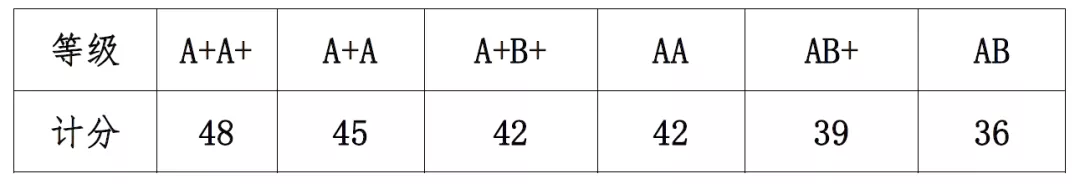 其中,选测成绩占10%,满分48分,每降低一个等级,减3分。