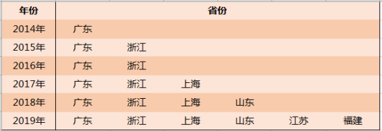 (2014-2019港中大(深圳)实施综合评价的省份)