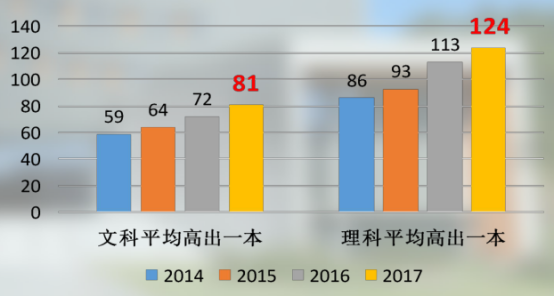 从上表可以看出,2014至2017年,港中大(深圳)文科和理科录取成绩都远远超出各省一本线,文科平均超出当地一本线至少59分,理科平均超出当地一本线至少86分。