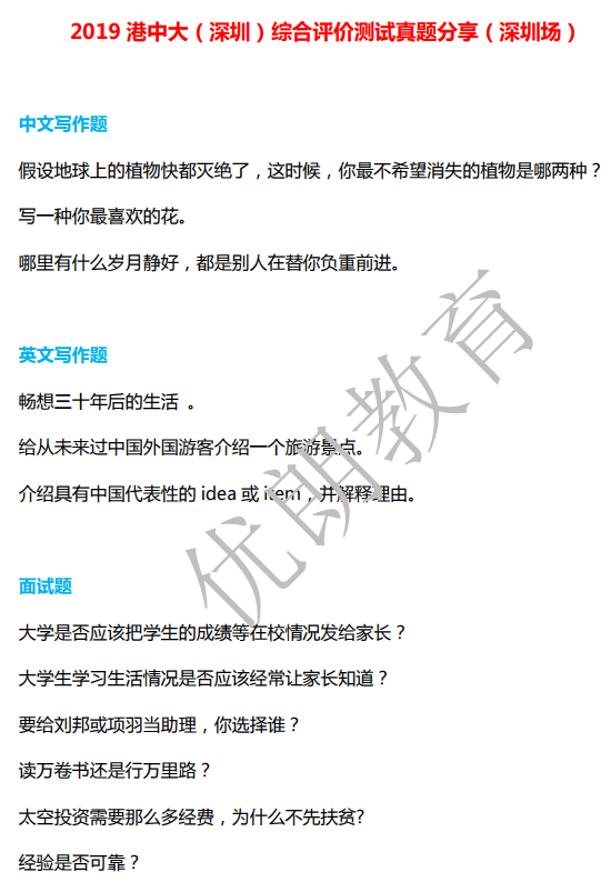真题抢先看 | 直击2019港中大(深圳)综合评价深圳面试现场