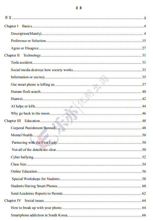 (《高校面试英语口语》部分目录)