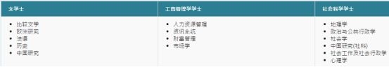 第三、四年,学生可视乎在香港大学报读的学位课程,修读文学、社会科学或商学主修。