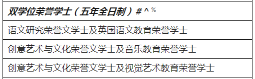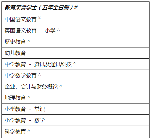 备注:% 课程将提供全面的中学及小学教学训练,成功完成课程的毕业生可于香港任教中学或小学;
