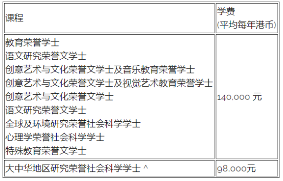 以下是在香港教育大学修读学士课程每年所需的学费,其中不包括住宿费及来往香港及各地的交通费、保险、衣物、娱乐、书本等。