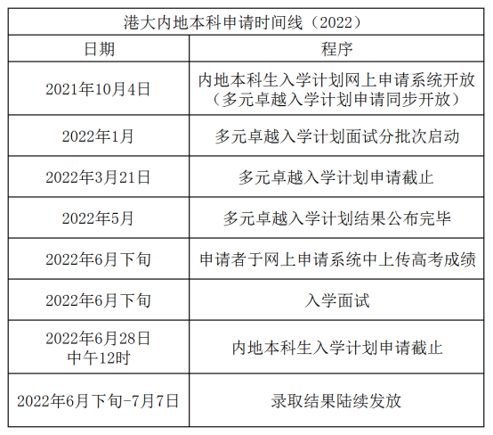 香港大学已经公布了2022年秋季入学本科招收内地高考学生的公告以及『多元卓越计划』的时间表,至此,港大针对内地高考学生的招生正式拉开序幕。