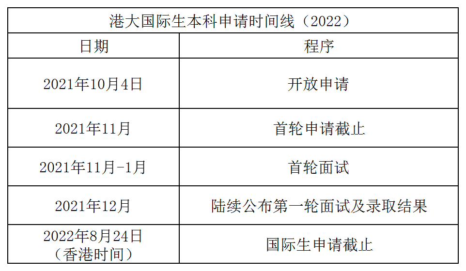 2022年港大国际生申请也将于10月4日开放,11月17日就将截止首轮申请。11月17日以后申请的学生将采用滚动式审核,因此意向申请的学生还需尽早准备,尽快完成第一轮申请,优先录取!
