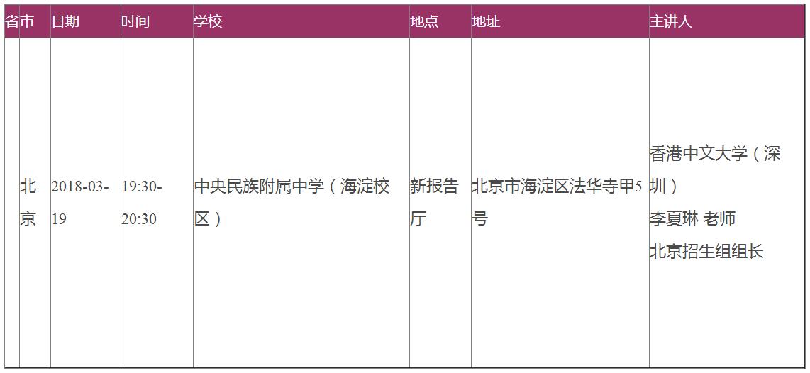招生宣讲会3.19 | 2018年香港中文大学(深圳)北京市活动安排