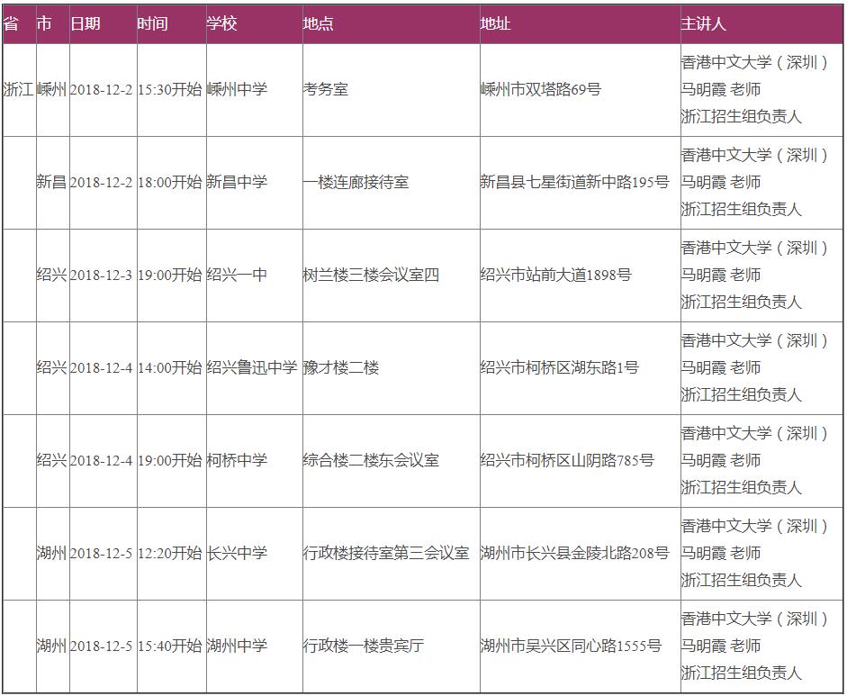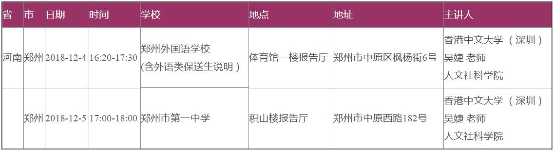 港中文(深)2018年12月招生宣讲会(河南、浙江省)