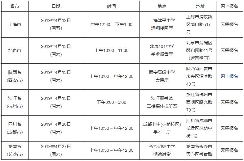 香港浸会大学将于2019年在全国部分省市举办内地招生说明会,欢迎高三学生及家长、中学老师、传播媒体及有兴趣了解到香港升学的公众人士出席,参加费用全免。