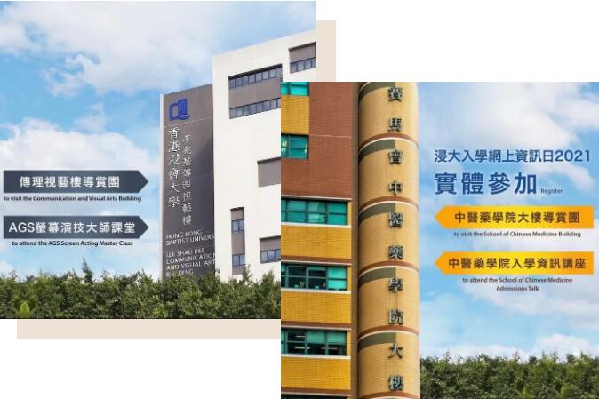 浸大今年的入學資訊日除了網上環節,還將包括數項實體活動,例如中醫藥學院的設施參觀、新聞系和電影學院安排的製作室參觀,以及工商管理學院的開放日活動。