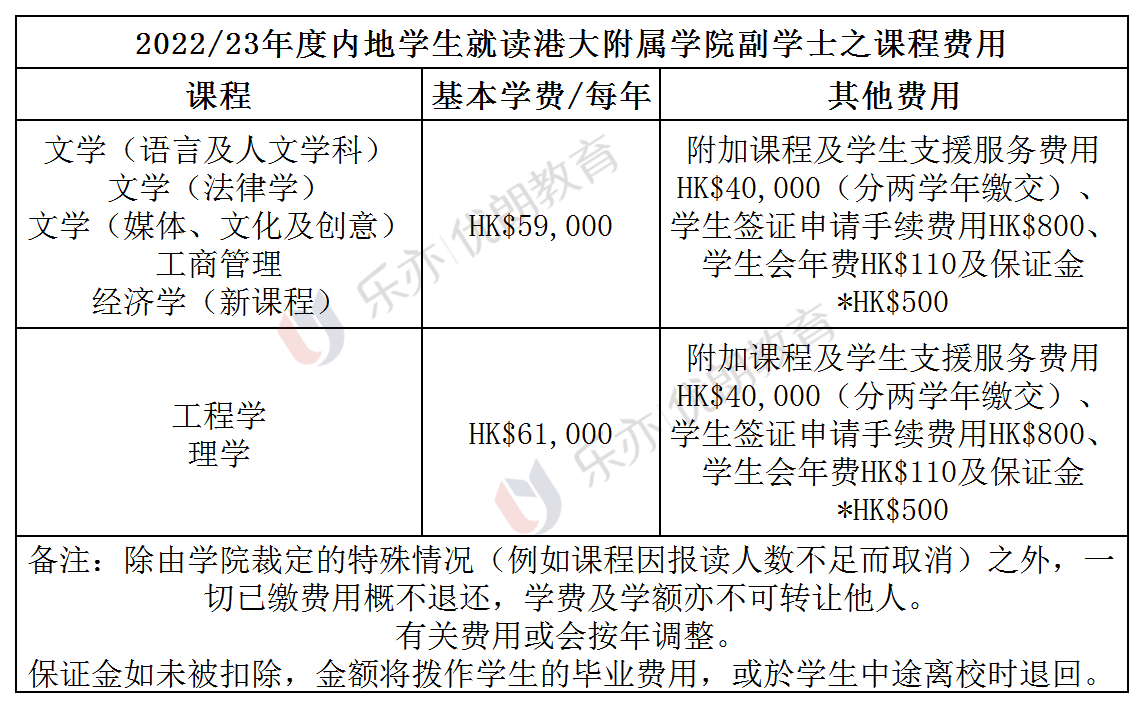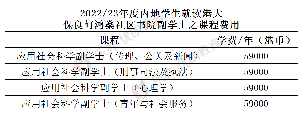 (2022/23学年港大保良何鸿燊社区书院副学士学费)