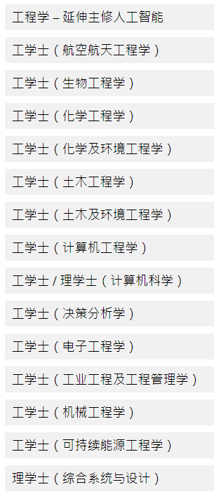 对工学院专业及人工智能有明确兴趣的同学可以报读 ‘工程学– 延伸主修人工智能’,在完成第一学年后可选择其中一门工学院主修专业并获保证可修读延伸主修人工智能。