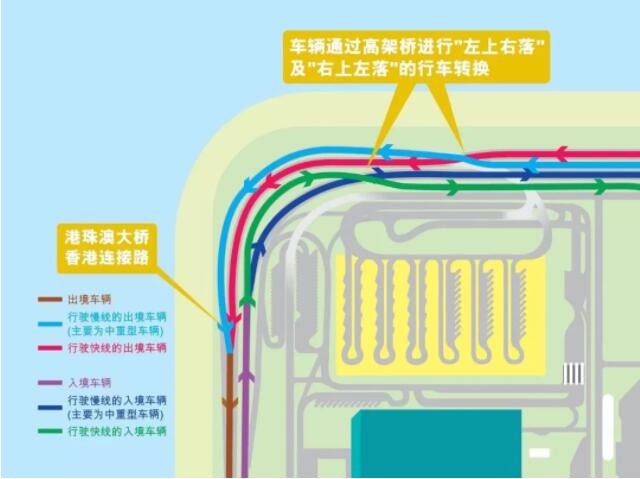 香港高铁站施行“一地两检”,不过港珠澳大桥还是施行传统的过关模式,即“三地三检”——三地口岸由三地政府各自负责设立和管理。
