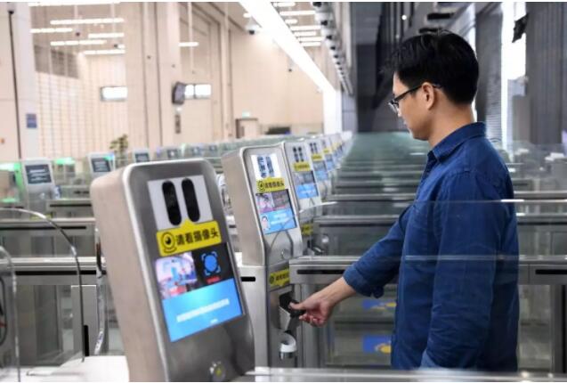 (在港珠澳大桥珠海公路口岸边检合作自助通道,工作人员模拟演示一次刷卡快速通关)
