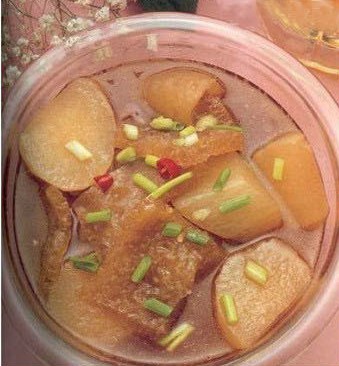 正的猪皮萝卜是不会浸得太腍,猪皮爽口,萝卜鲜嫩。靓靓的猪皮软硬适中,弹牙爽脆。萝卜嫩口唔起渣,清爽清甜,配合其秘制麻辣酱更惹味。